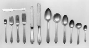 Six dinner forks, six tablespoons, four teaspoons. Monogrammed.