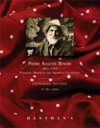 ![]() ![]() Property includes Renoir’s birth and marriage certificates, funeral and burial receipts; letters to his wife and sons; personal artifacts; family photograph albums; personal financial documents; correspondence from contemporary artists, notable figures and agents Bernheim-Jeune, Durand-Ruel and Vollard; watercolor and three drawings; hundreds of vintage glass plate negatives depicting Renoir, his family, friends and models posed in landscapes for paintings; copper lithographic plates of Renoir works; ceramics made at Les Collettes; and massive archives collection. Session I Illustrated Highlights Auction Date: Saturday, May 14, 2005 at 10:00 a.m. Live Gallery and Simulcast eBay