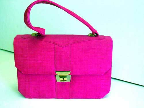 A fuchsia pink silk purse given to Jacqueline Kennedy on her 1962 trip to India and worn by her there,