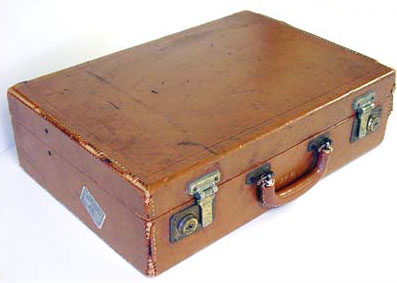 Gilt monogrammed tan leather attaché given to JFK by Jacqueline Bouvier
