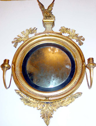 | Lot 1111 Federal Gilt Girandole Convex Mirror with Eagle Crest. Circa 1810. 35" x 21". |