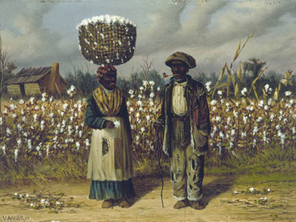 | Lot 1080 William Aiken Walker (Charleston, S.C., 1838-1921). Cotton Pickers. Signed l.l. WAWalker. Oil on panel. 9" x 12", matted and framed. William Aiken Walker was a mostly self taught genre, portrait and landscape painter who started painting and exhibiting at an early age. During the Civil War he served the Confederacy as a cartographer and afterwards settled in Baltimore. He traveled widely throughout the South and returned to New Orleans during the winters where he painted various aspects of antebellum plantation life. His scenes of black cotton pickers are most notable although he also painted fish, game and landscapes. Two of his large paintings were reproduced by Currier & Ives as chromolithographs. |